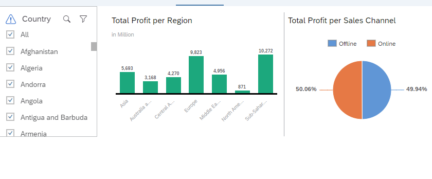 - You can see if we changed the filter in country its only changing the Bar chart, but Pie chart is still showing total value (as show below image)